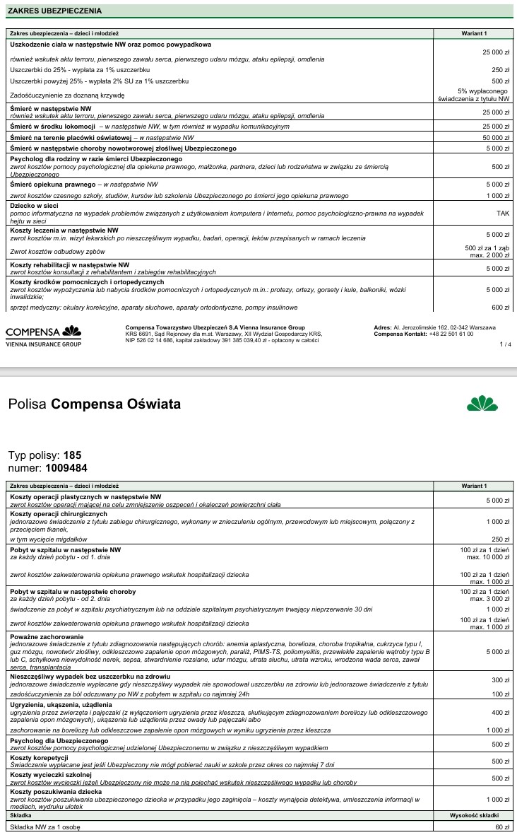 Poniżej przesyłamy najważniejsze informacje dotyczące polisy NNW dla naszych uczniów w TU Compensa SA: