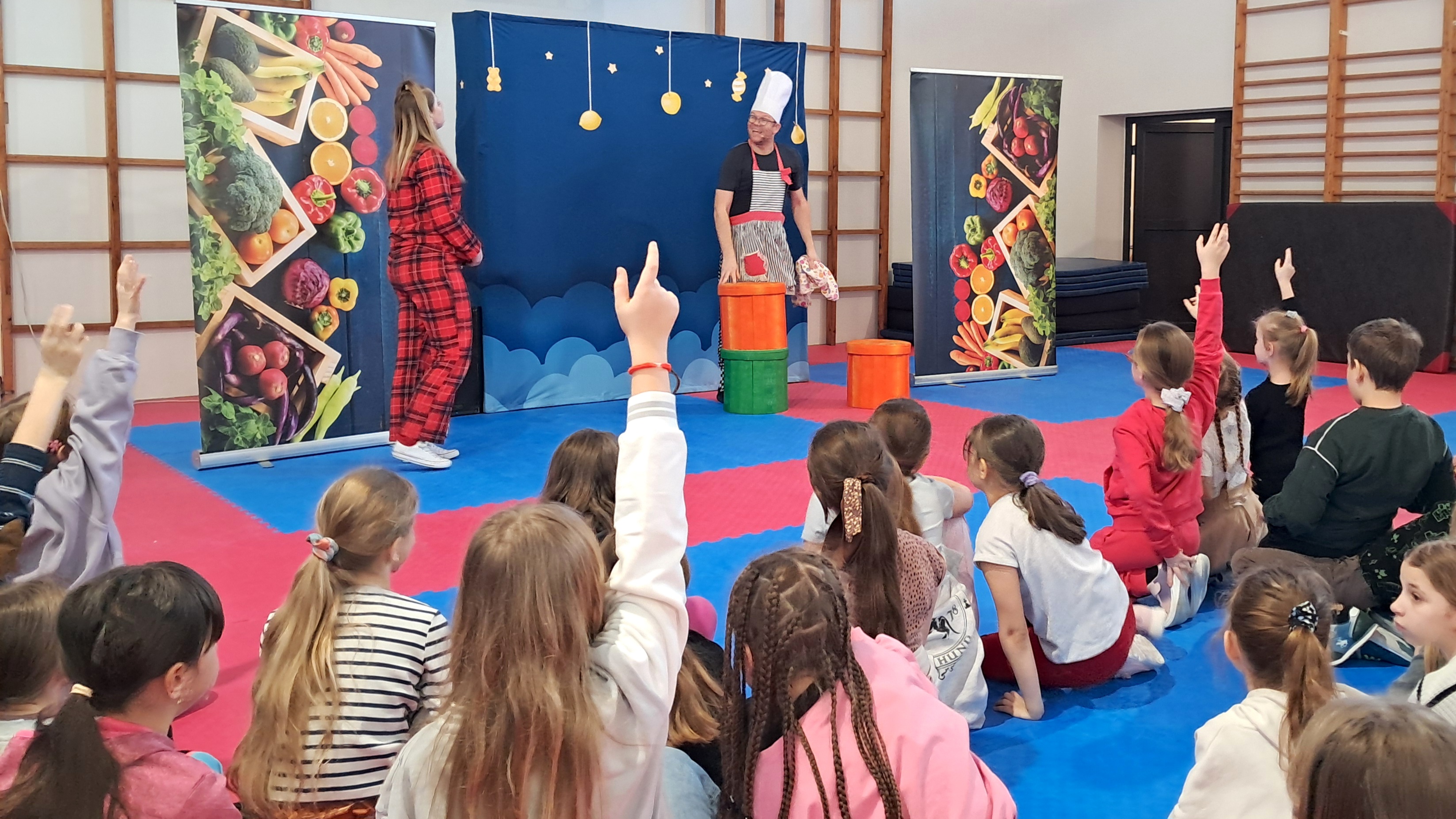 "Bajka do zjedzenia" to smaczna opowieść o tym co warto jeść, a czego się wystrzegać. Pod szatą dowcipnej fabuły ukrytych jest wiele ważnych zasad dotyczących prawidłowego żywienia. Posiłkując się najnowszą piramidą żywienia w prosty i przyjemny sposób dzieci otrzymują porcję odpowiedzi na pytania: Dlaczego cukier jest zły, czy podjadanie jest zdrowe, jakie moce mają warzywa i owoce i dlaczego tak ważny jest ruch. Spektakl bardzo zdrowy, lekkostrawny, pełen witamin i endorfin.