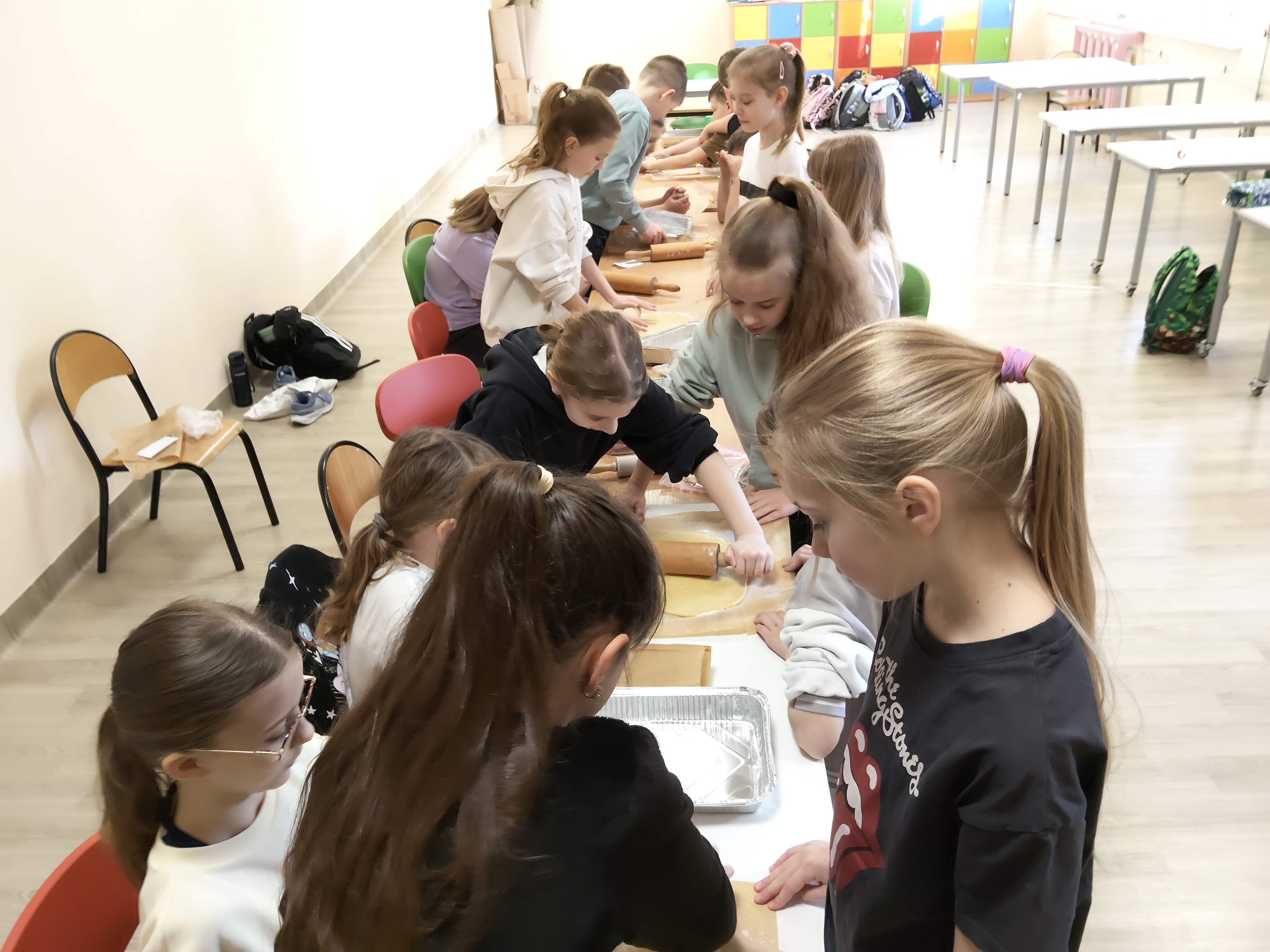 Uczniowie z klasy 3 b w czasie zajęć Małego kuchcika dnia 25 i 26 marca poznawali tradycje Wielkanocy. W pierwszym dniu piekli mazurki, a drugiego dnia ozdabiali dżemem, nutellą, kajakiem, posypywali kolorową posypką.